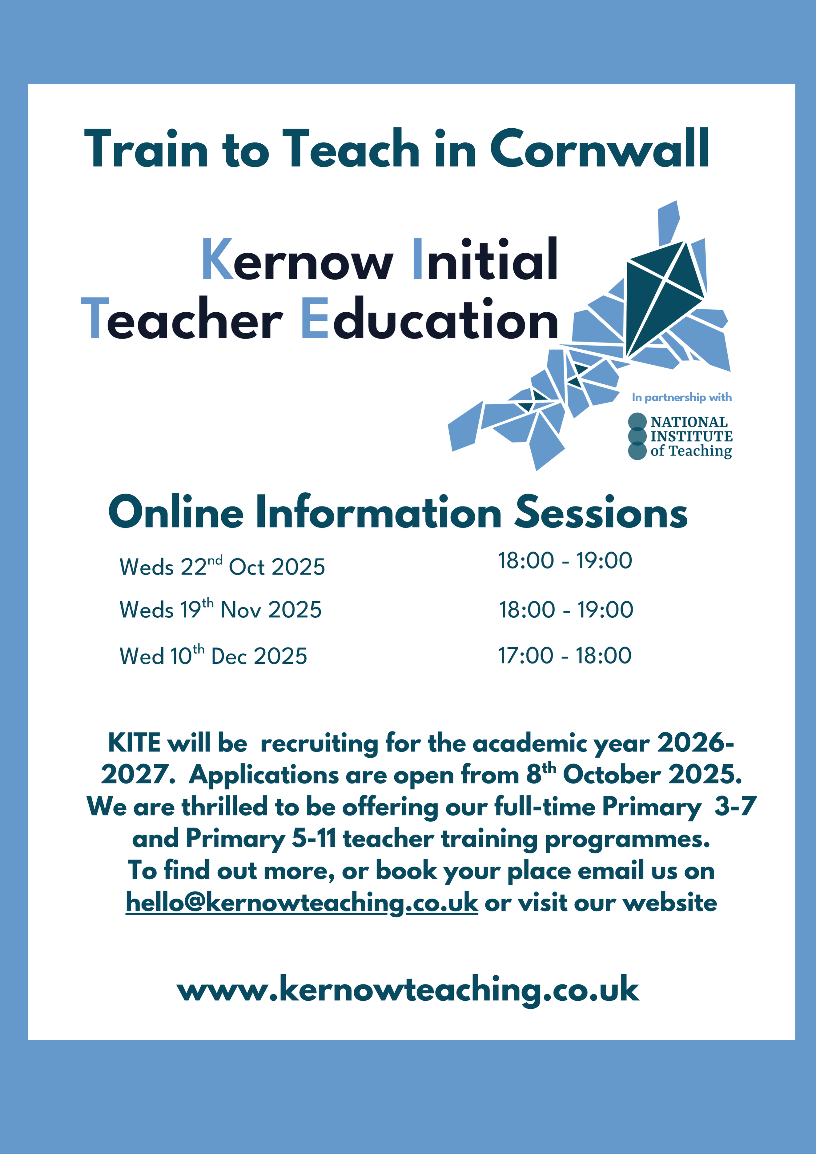 Email hello@kernowteaching.co.uk or visit our website www.kernowteaching.co.uk