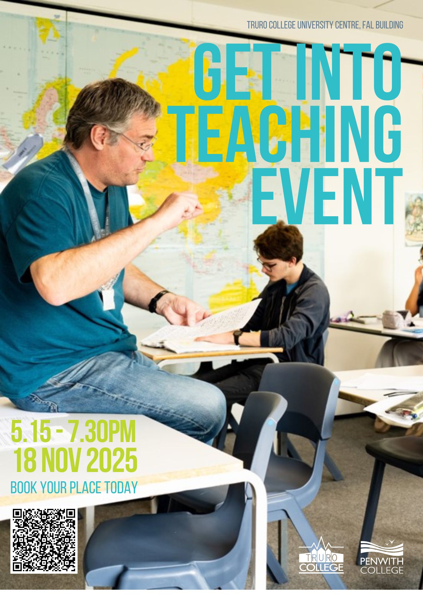 Listed below are Cornwall ITT provider events. This list is not exhaustive and providers will usually advertise their information events on their own websites and on the DfE 'Get into Teaching' website. You can access this here and search for events in the geographical area that you wish to study in.