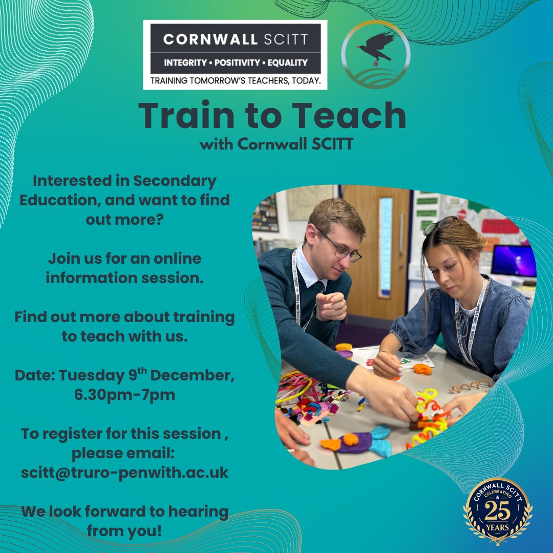Please email scitt@truro-penwith.ac.uk and a Teams meeting link will then be sent to you.